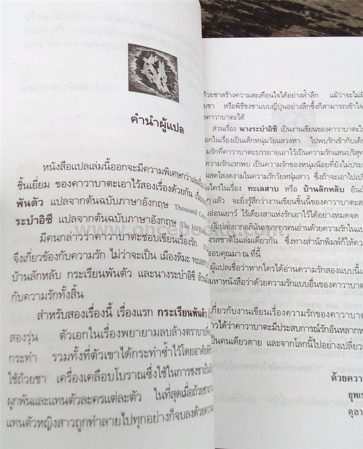 ยาสึนาริ คาวาบาตะ เขียน ยุพเรศ วินัยธร แปล