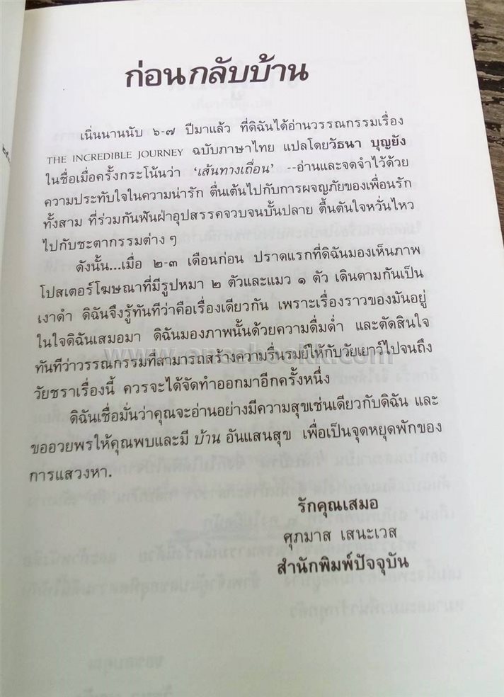 ชื่อสินค้า / บริการ : กลับบ้าน (เส้นทางเถื่อน) Sheila Burnford /วัธนา บุญยัง