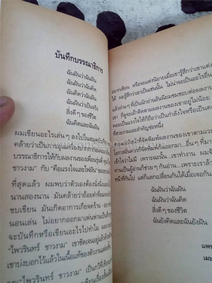 แพรวสำนักพิมพ์  พิมพ์ครั้งที่สอง 2540      78 หน้า, กระดาษปรู๊ฟ ปกอ่อน