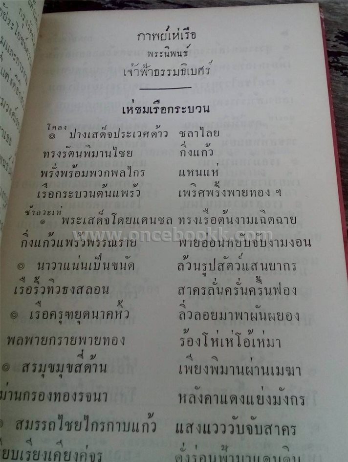 ชื่อสินค้า / บริการ : ประชุมกาพย์เห่เรือ สมัยกรุงศรีอยุธยาและรัตนโกสินทร์ เจ้าฟ้าธรรมธิเบศร์ (เจ้าฟ้ากุ้ง) ฯลฯ