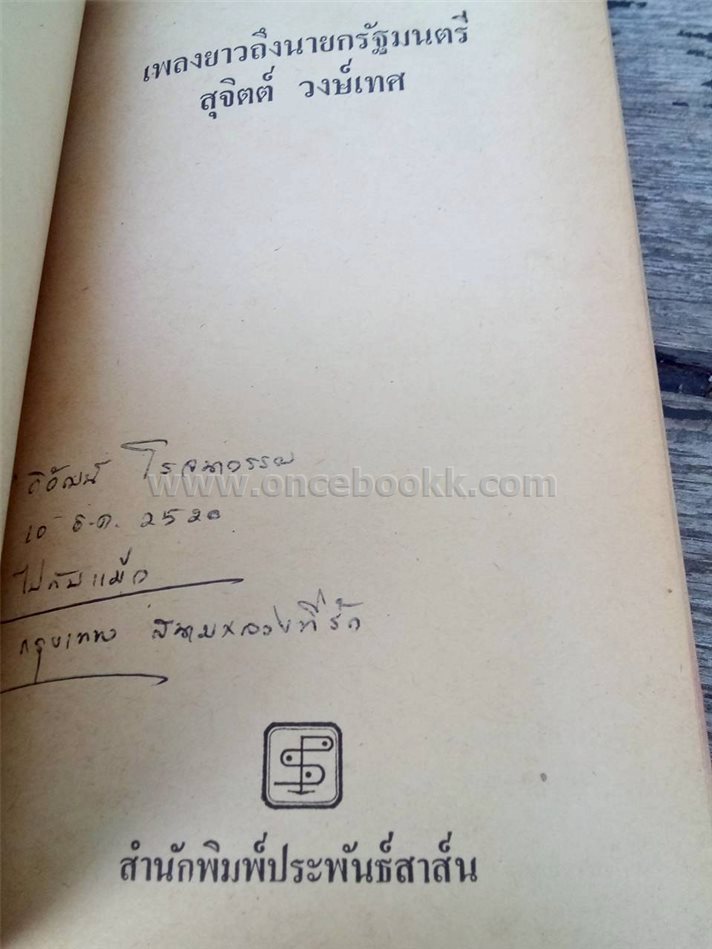 ชื่อสินค้า / บริการ : เพลงยาวถึงนายกรัฐมนตรี สุจิตต์ วงษ์เทศ