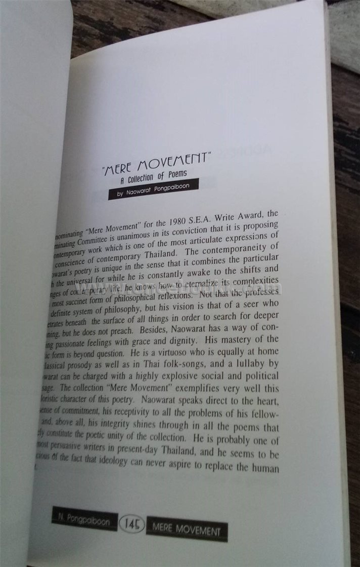 ชื่อสินค้า / บริการ : เพียงความเคลื่อนไหว (กวีซีไรต์/ร้อยหนังสือดีควรอ่าน) 2 ภาษา เนาวรัตน์ พงษ์ไพบูลย์
