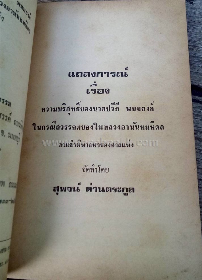 ความบริสุทธิ์ของนายปรีดี พนมยงค์ ในกรณีสวรรคตของในหลวงอานันทมหิดล