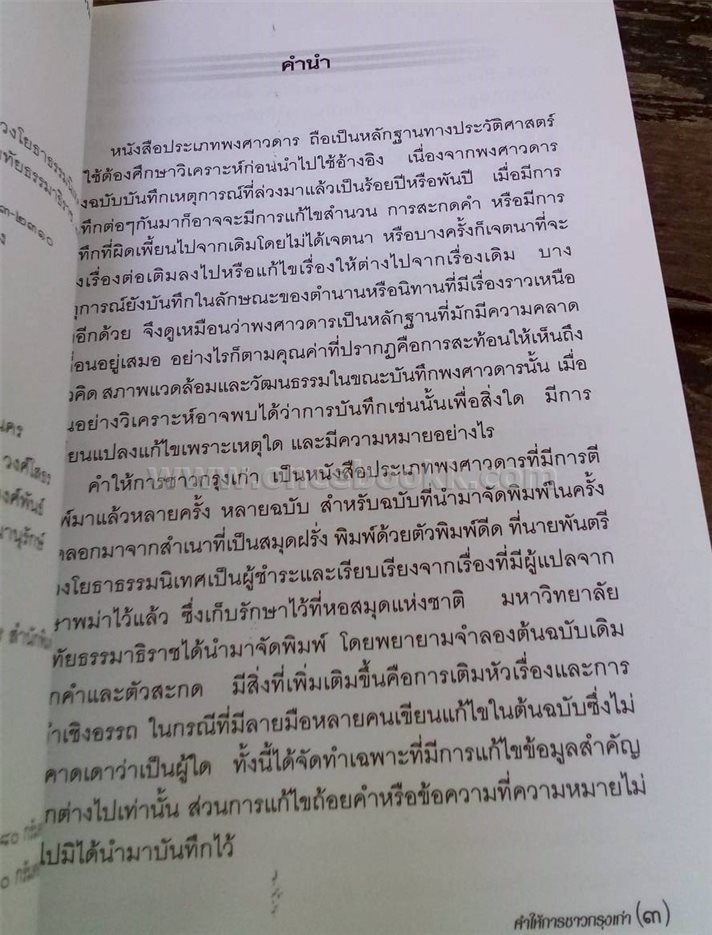 ชื่อสินค้า / บริการ : คำให้การชาวกรุงเก่า พระราชพงศาวดาร