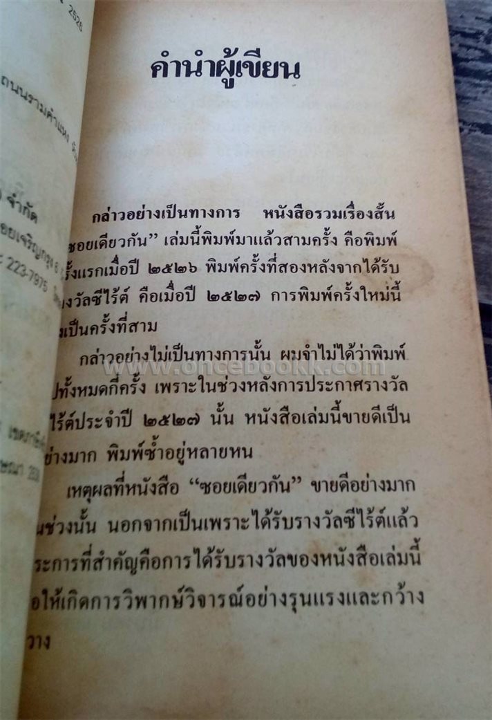 ชื่อสินค้า / บริการ : ซอยเดียวกัน (เรื่องสั้นซีไรต์) วาณิช จรุงกิจอนันต์