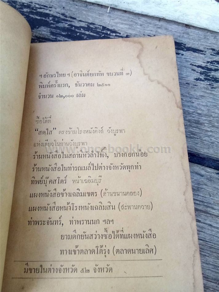 สำนักพิมพ์โอเลี้ยงห้าแก้ว พิมพ์ครั้งแรก 2511 204 หน้า, กระดาษปรู๊ฟ ปกอ่อน